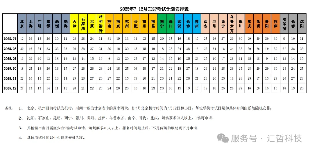 2025年6月5日,中国信息安全测评中心发布《2025年7-12月CISP考试计划安排表》,全文如下: